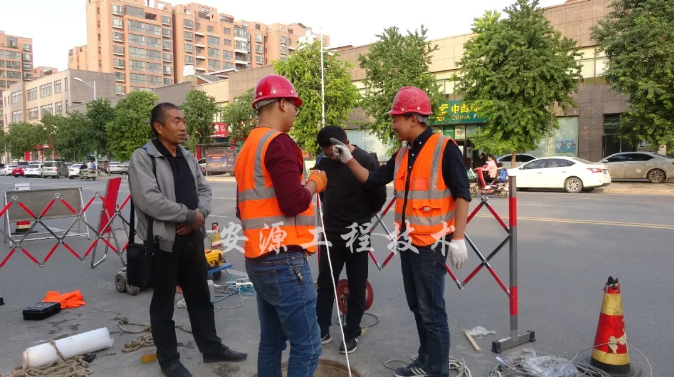 施工期間,市政管養(yǎng)工作人員來現(xiàn)場(chǎng)檢查工作,我公司工程部李海軍經(jīng)理向他們?cè)敿?xì)介紹工作原理。